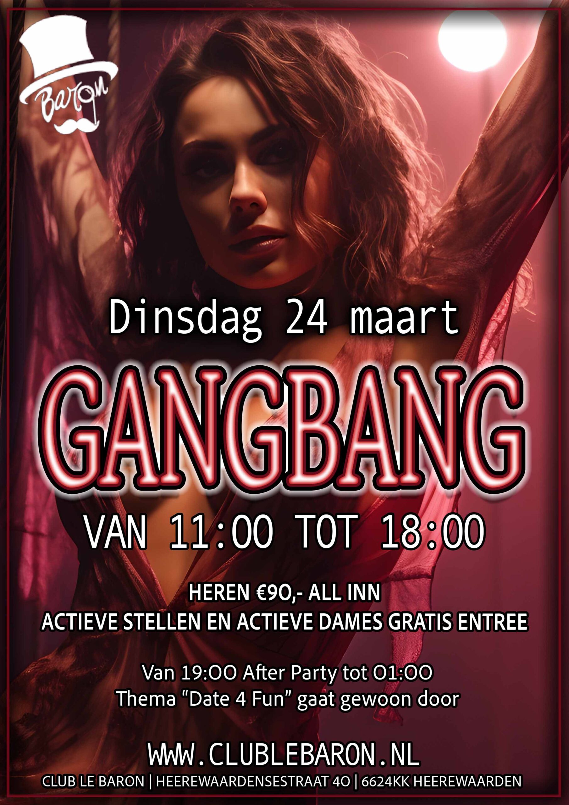 Bij ons kan je echt jezelf zijn en verder gaan waar anderen stoppen. Om een duidelijke avond zonder verrassingen te hebben zijn alle drankjes dezelfde prijs, namelijk €4,50 per stuk.Mixjes €9,- Zoals u kunt lezen hoeft u voor de kosten niet thuis te blijven. Weinig tijd? Zoals je ziet is een kort bezoekje ook mogelijk zonder hoge kosten! Lekker laagdrempelig en op tijden dat je een echte leuke date kan ervaren. We verwelkomen u graag bij Parenclub Le Baron in Heerewaarden.
